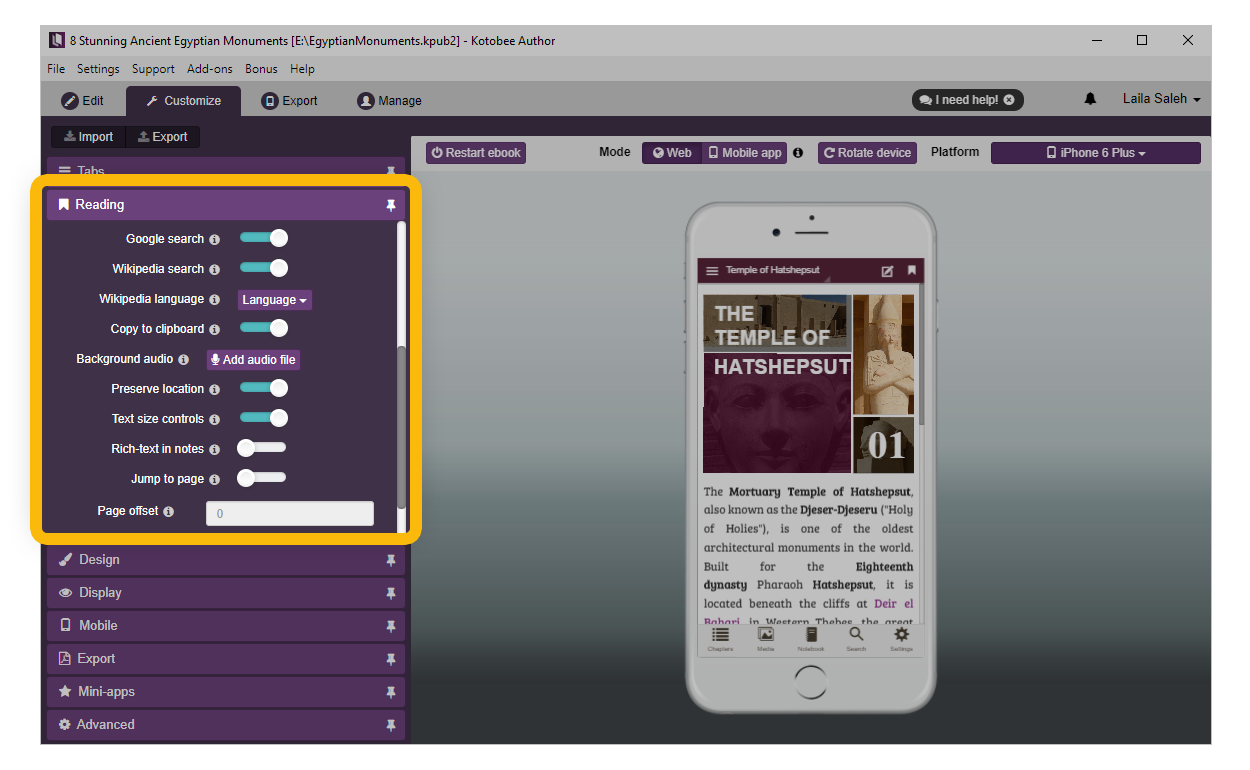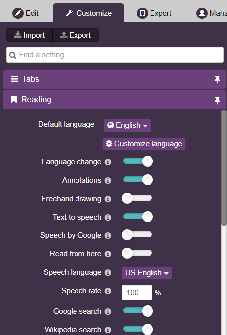Kotobee also supports an improved text-to-speech experience powered by Google’s Text-to-Speech engine.