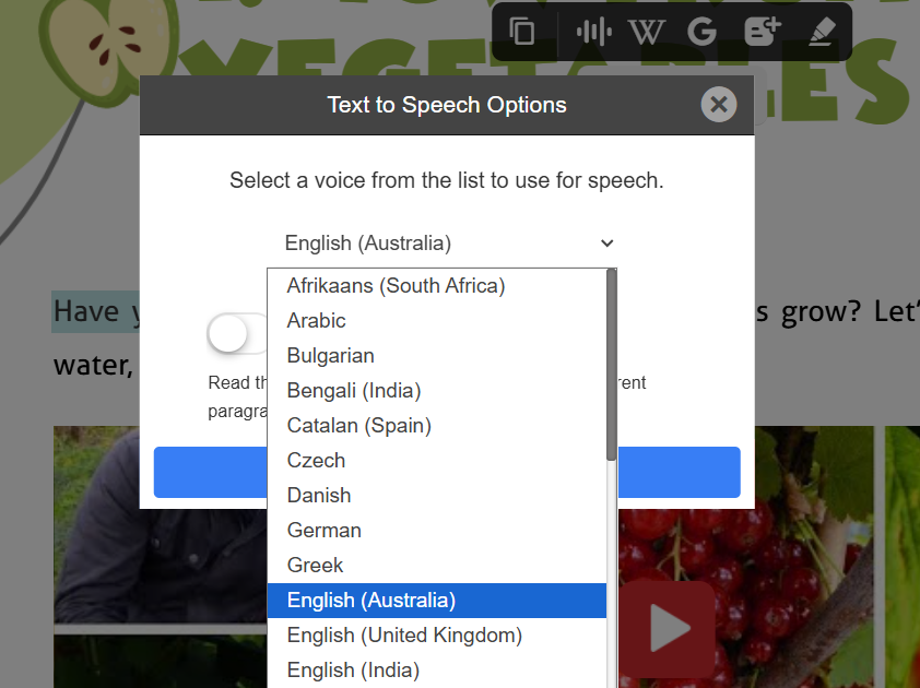 Enable Speech by Google to use clearer, more natural narration with broader language support.